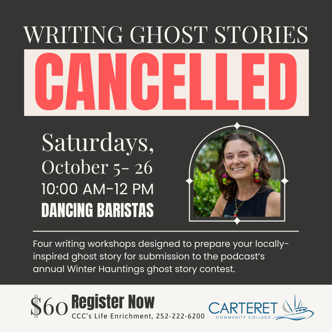 Dancing Baristas Cafe 823 W Beaufort Rd, BeaufortI'm cancelling the ghost story writing workshops through CCC as a family obligation has come up that would [...]