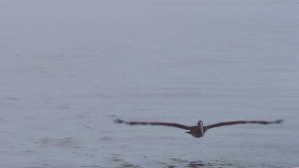 Pelican hovering over Lake Pontchartrain as we make our first crossing.